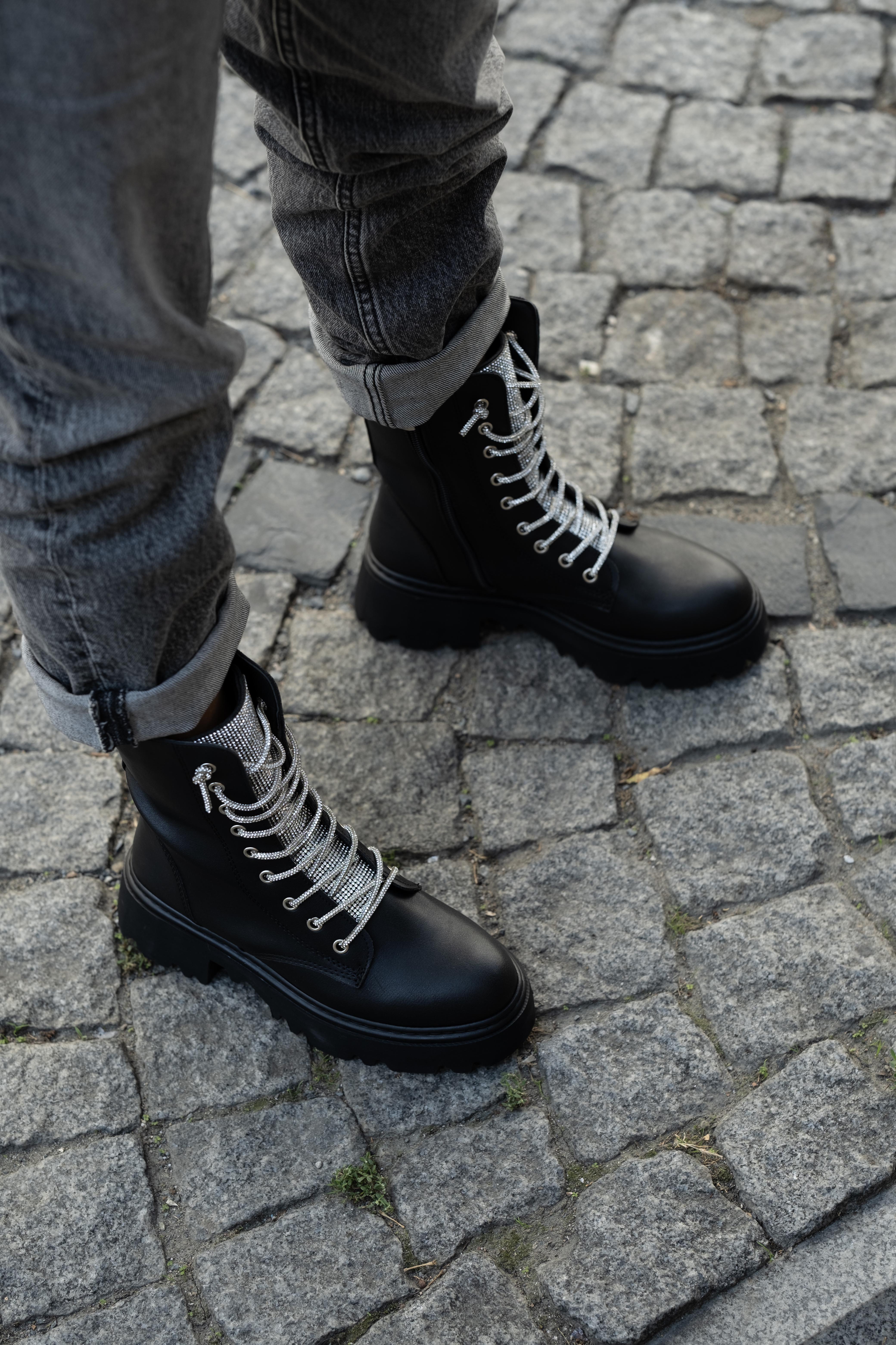 Melidy Model Bağcık Taş Detaylı Bot Siyah