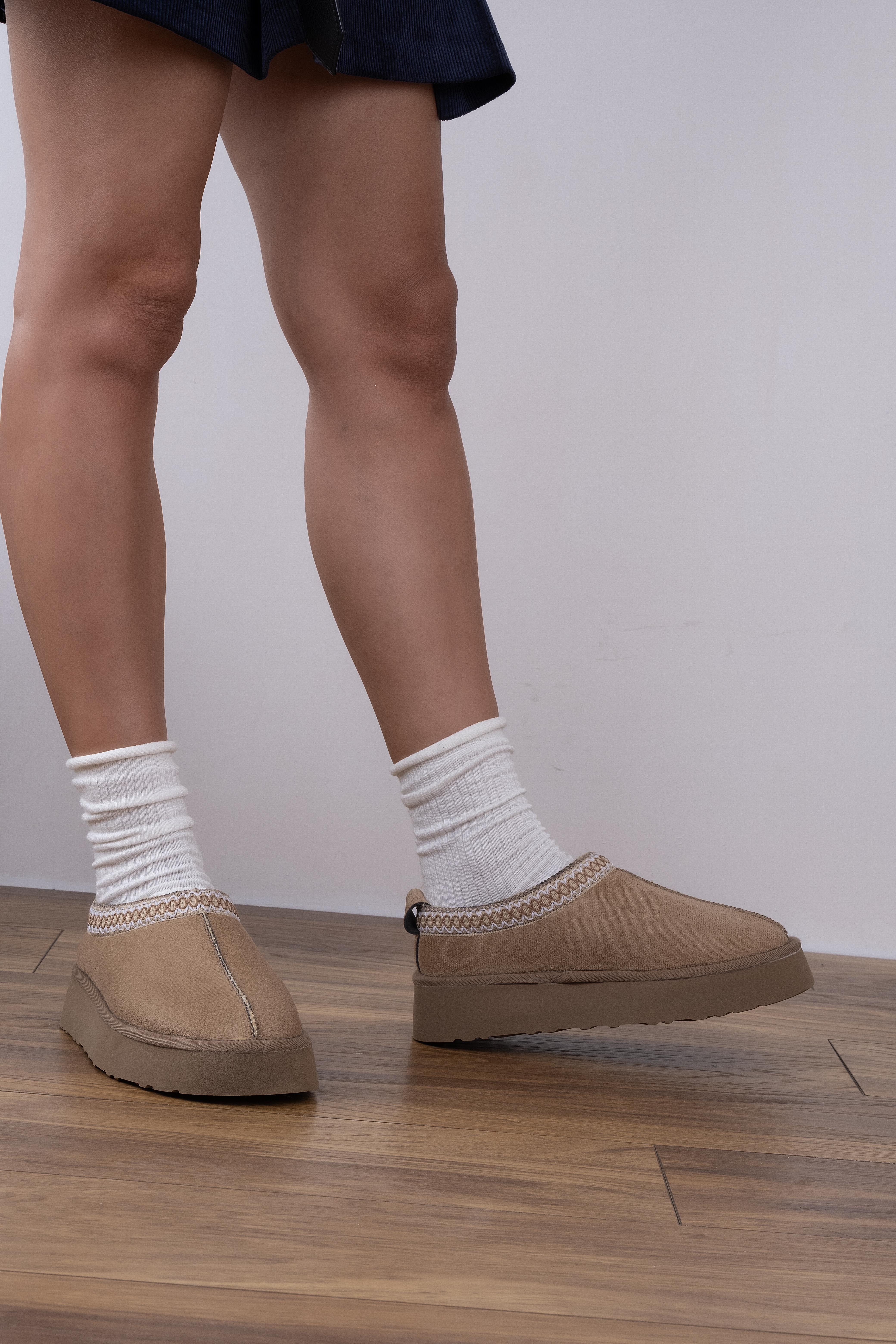 Sindie Model İçi Kürklü Kalın Taban Sabo Vizon Süet