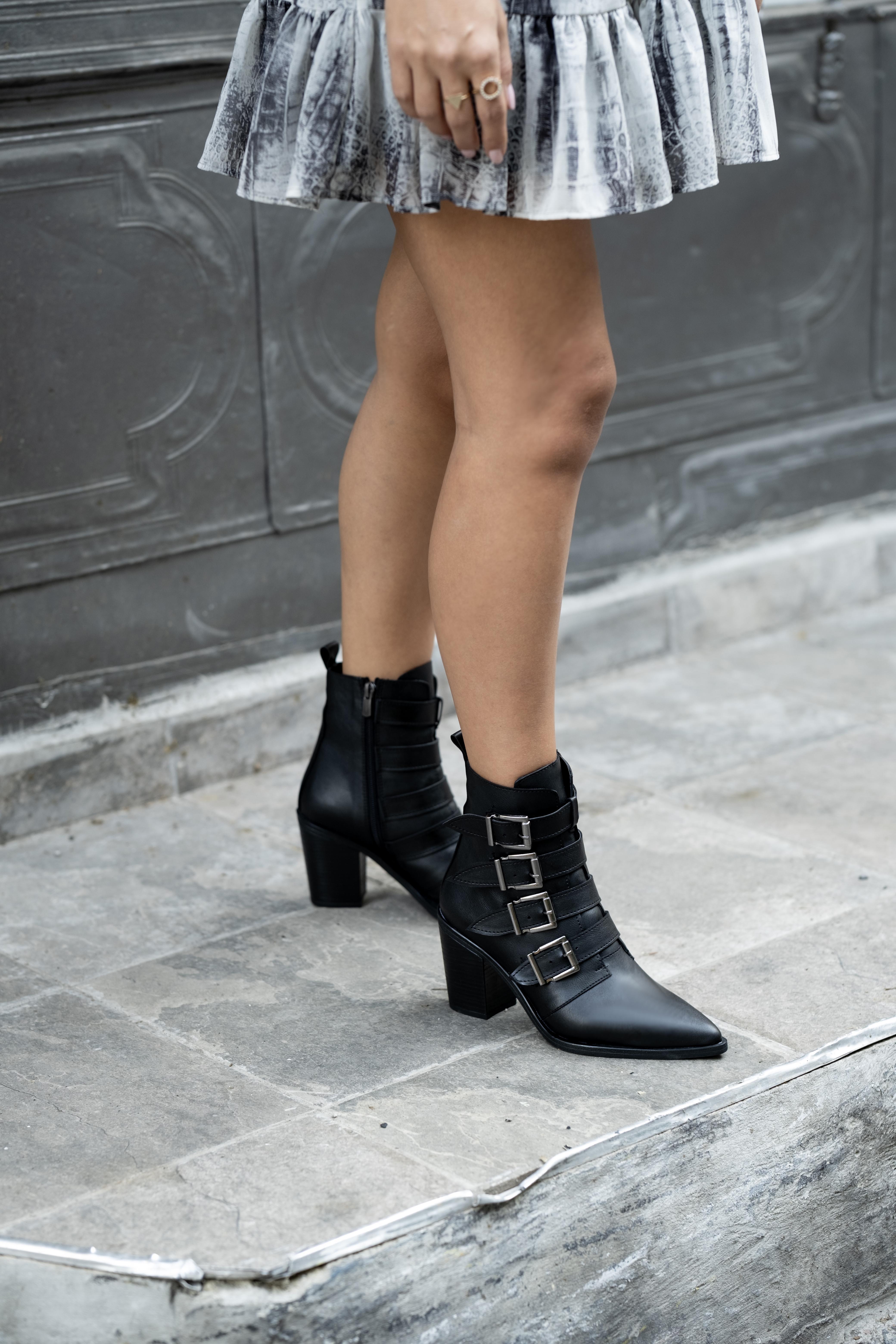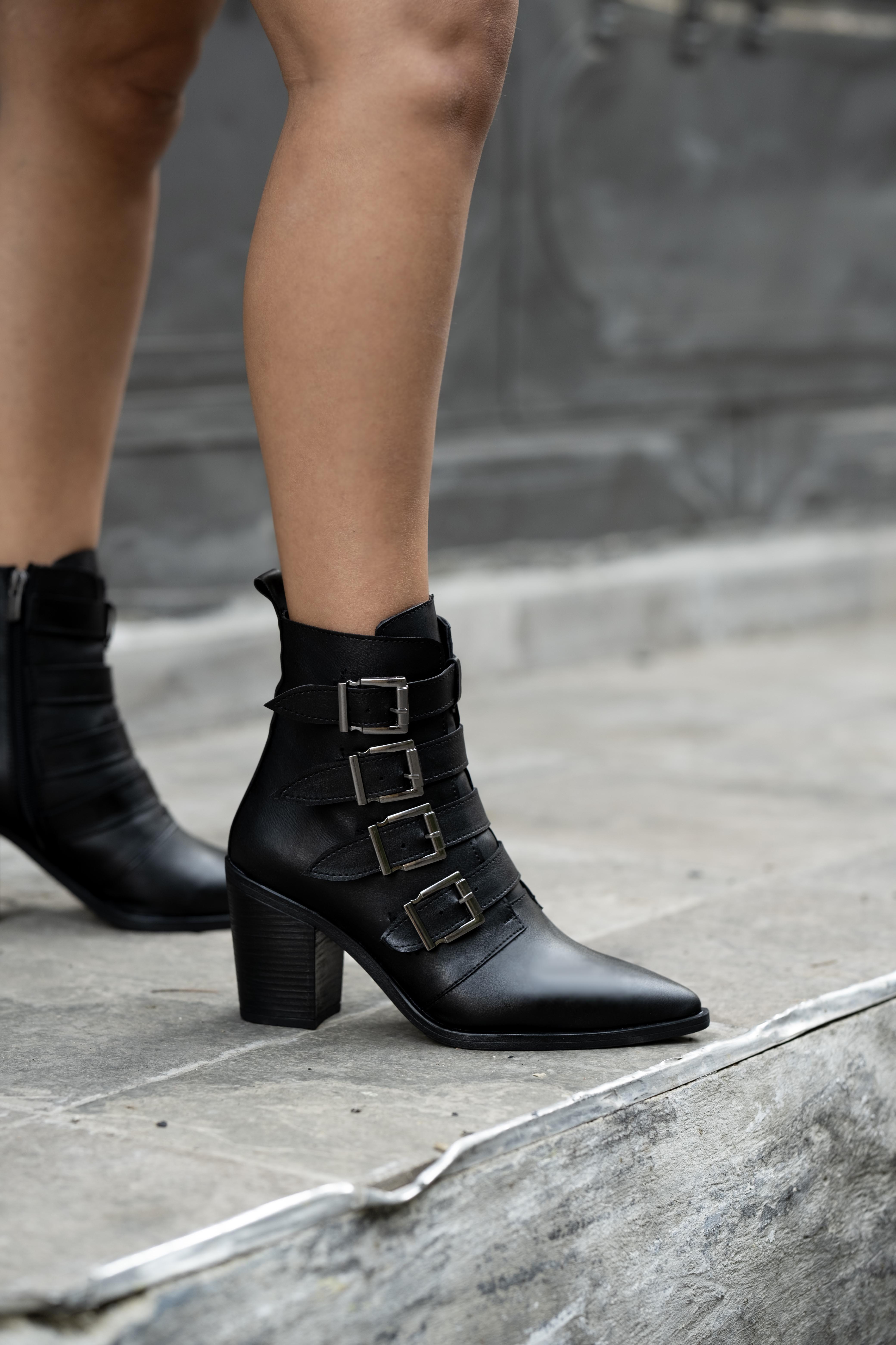 Zovan Model Kemer Detaylı Topuklu Bot Siyah