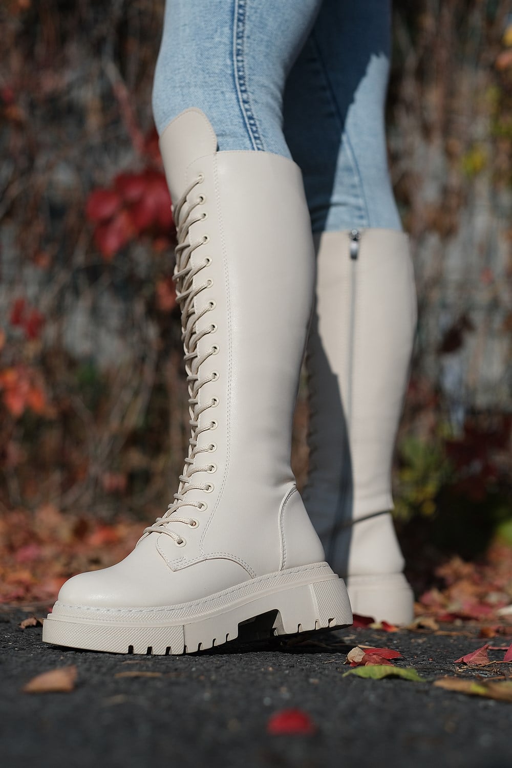 Borgov Model Kalın Tabanlı Çizme Bej