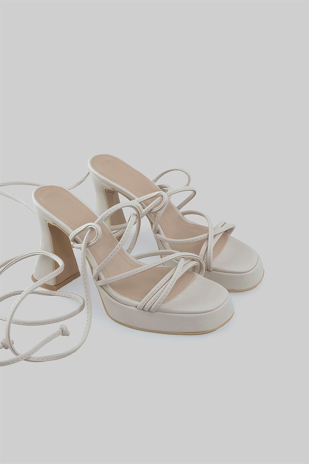 Danny Model Çapraz İp Detaylı Platform Topuklu Ayakkabı Bej