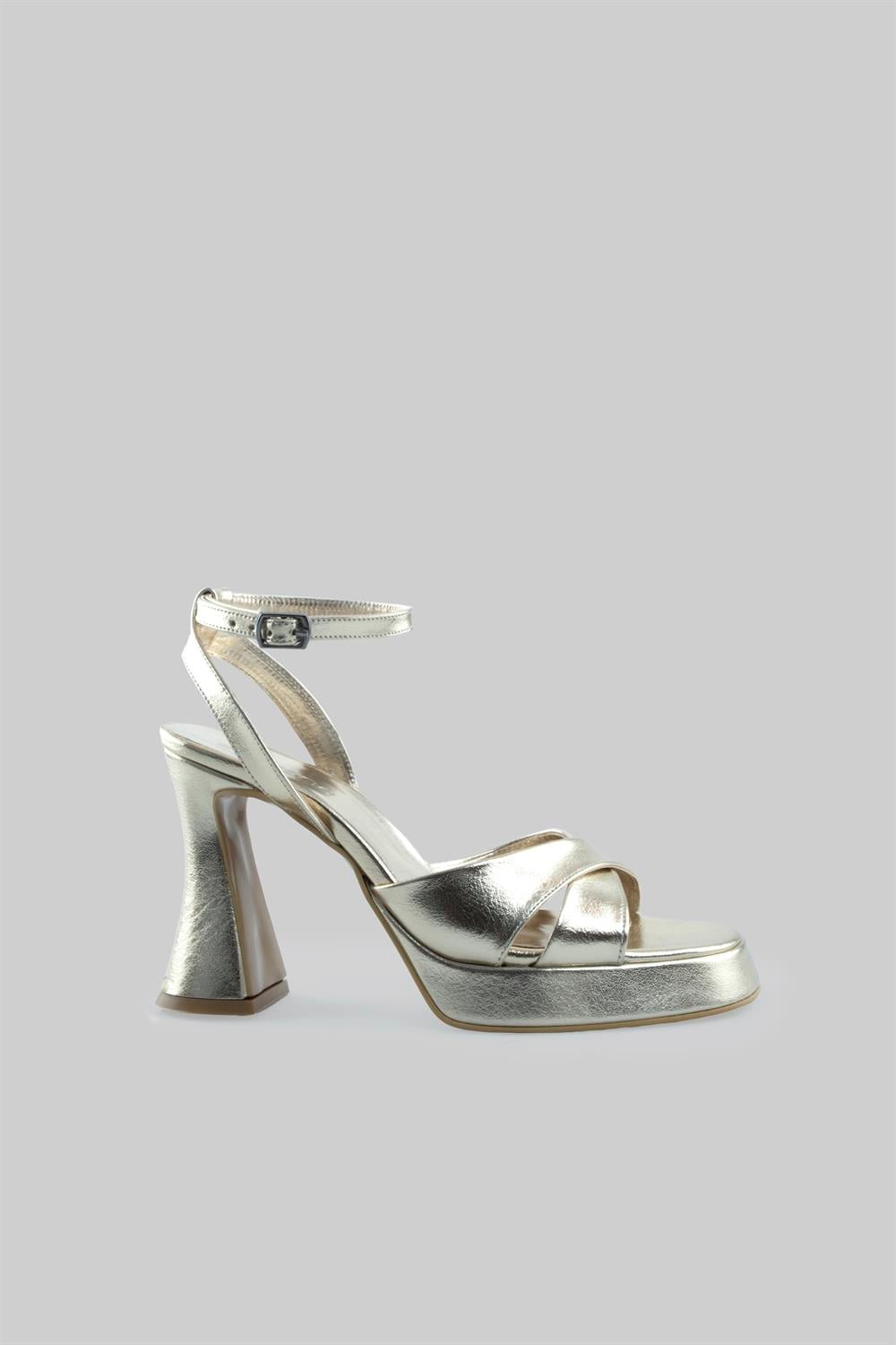 Darıan Model Çarpraz Bantlı Kalın Platform Topuklu Ayakkabı Altın Metalik