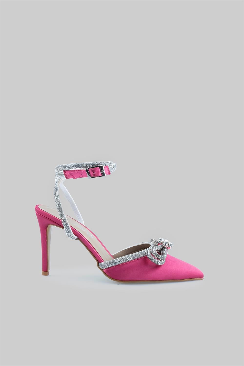 Frida Model Kurdele Detaylı Topuklu Ayakkabı Fuşya Saten