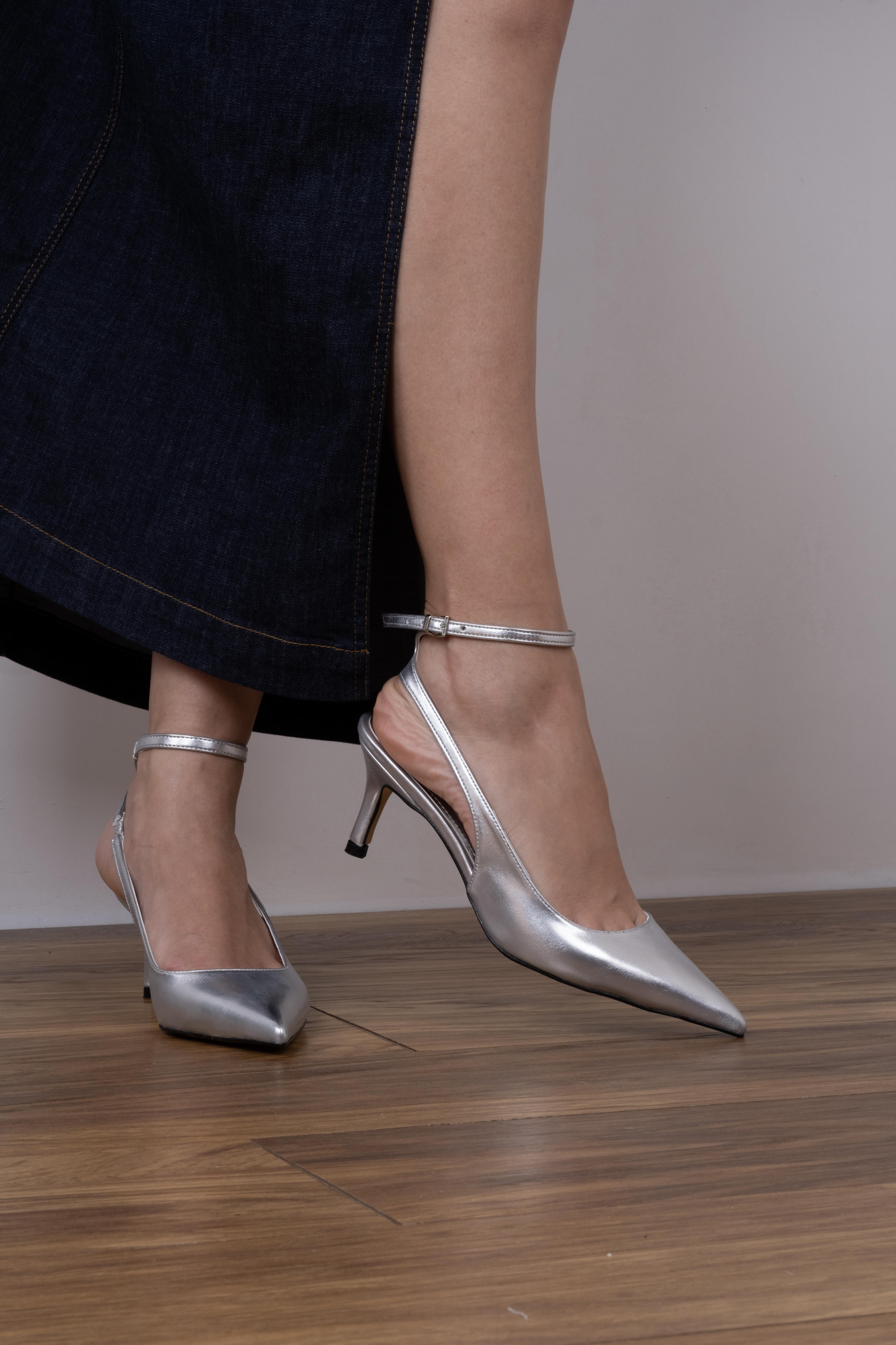 Lina Model Bilekten Bağlamalı Topuklu Ayakkabı Gümüş Metalik