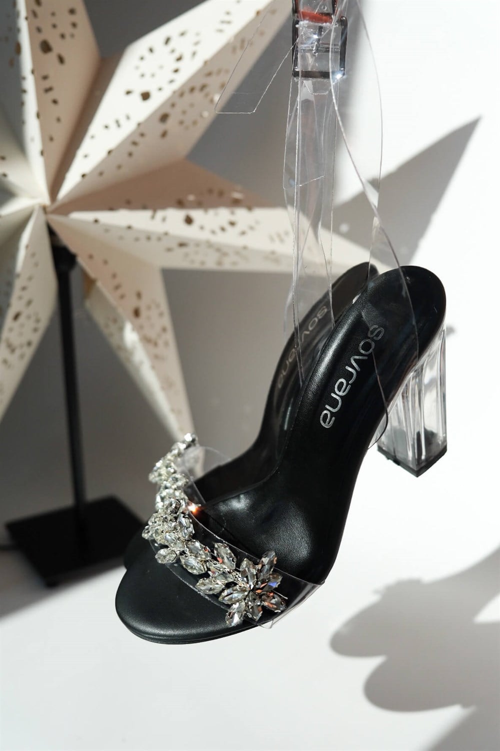 Lola Model Tek Bant Taşlı Kalın Topuklu Ayakkabı Siyah